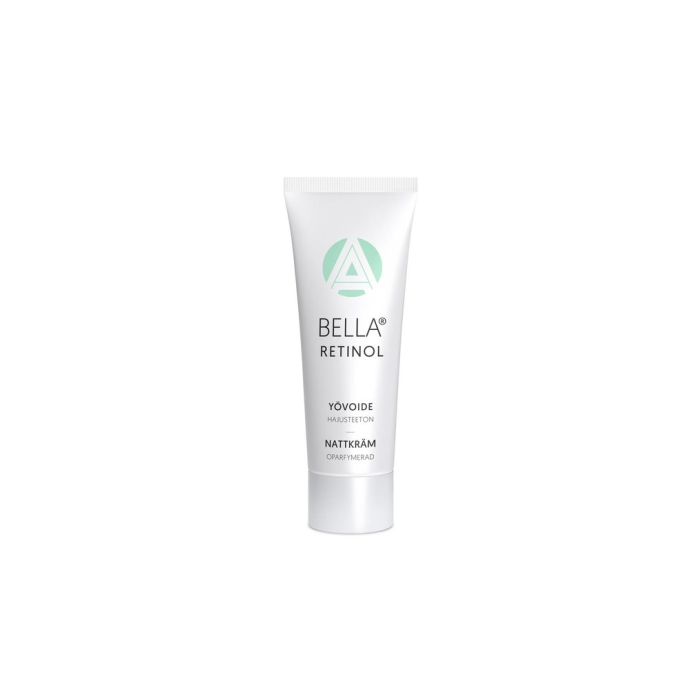 A-vitamiini auttaa silottamaan ryppyjä ja juonteita sekä vaikuttaa UV-säteilyn aiheuttamiin valovaurioihin häivyttäen iholäiskiä. Bella sisältää A-vitamiinia. Yövoiteen voidepohjan mango-, maapähkinä-, jojoba- ja riisinleseöljy hoitavat ihoa tehokkaasti. A-, E- ja C-vitamiinit säilyttävät ja tukevat ihon nuorekkuutta ja notkeutta. Hyaloronihappo tehostaa ihon kosteudensitomiskykyä.