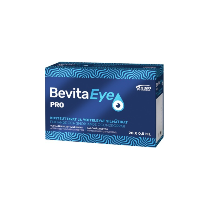 Bevita Eye Pro on säilöntäaineeton silmätippaliuos, joka soveltuu keskivaikean ja vaikean kuivasilmäisyyden hoitoon. Se kosteuttaa, suojaa, voitelee ja tasapainottaa. Valmiste soveltuu tutkitusti erityisen hyvin käytettäväksi piilolinssien kanssa.